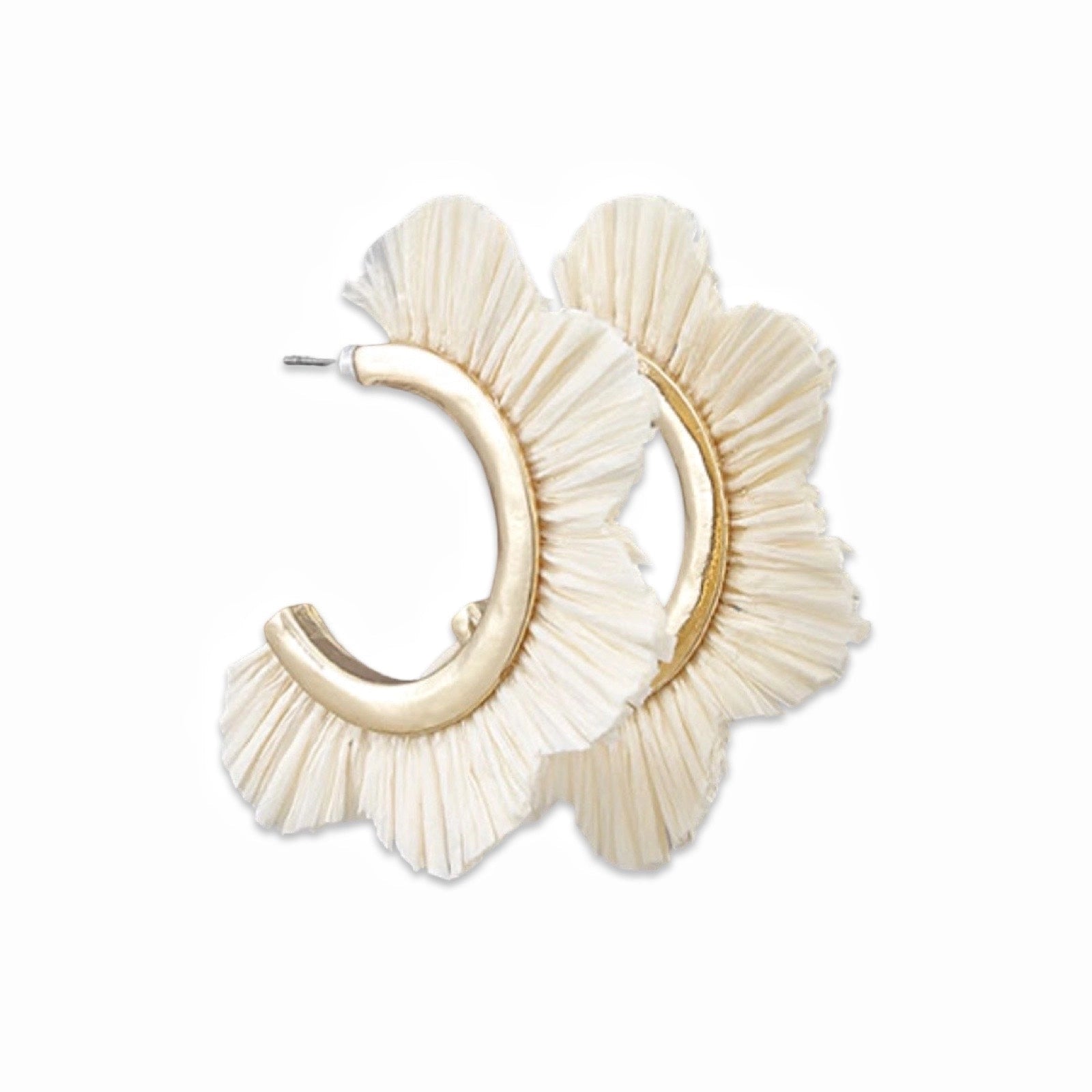 Cream Raffia Petal Hoop Earring | Scalloped Hoops|