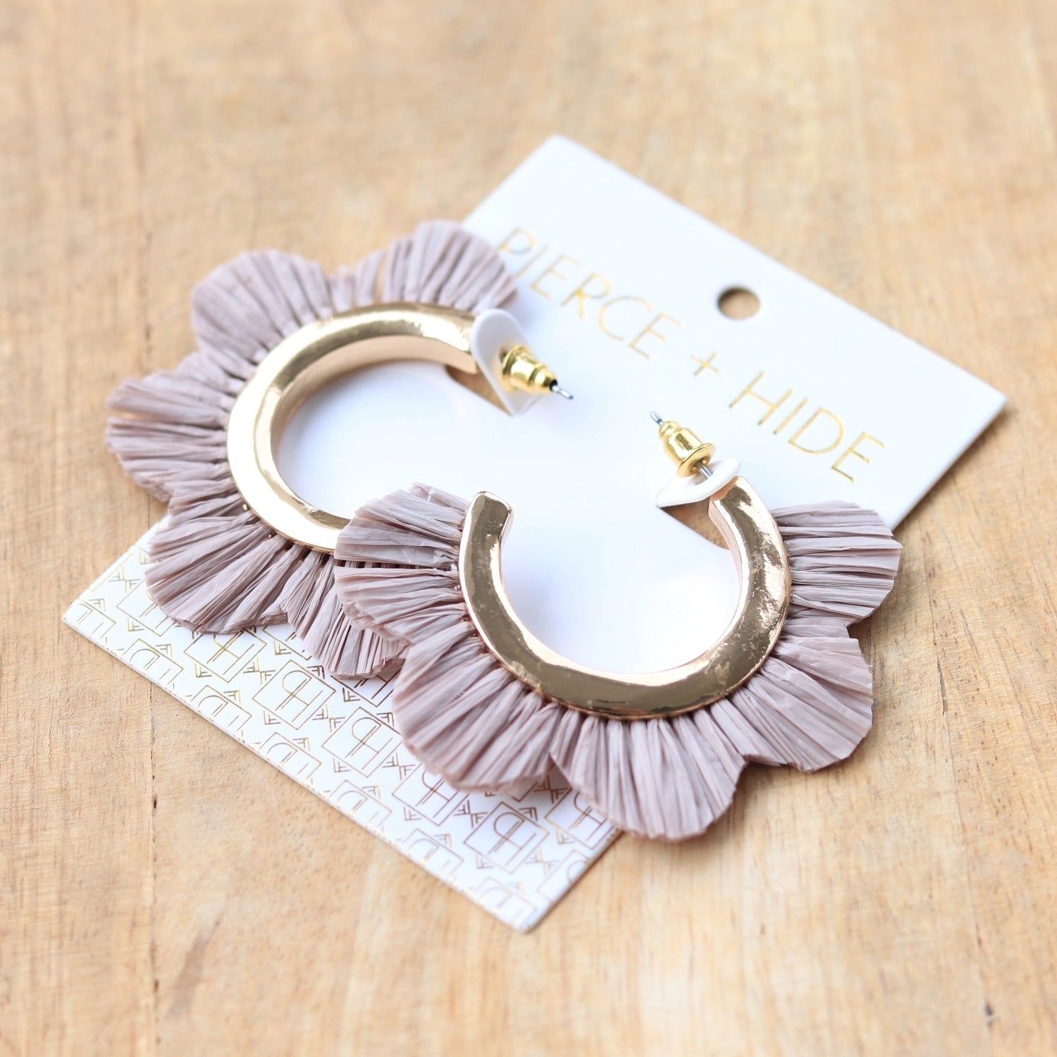 Grey Raffia Petal Hoop Earring | Scalloped Hoops|