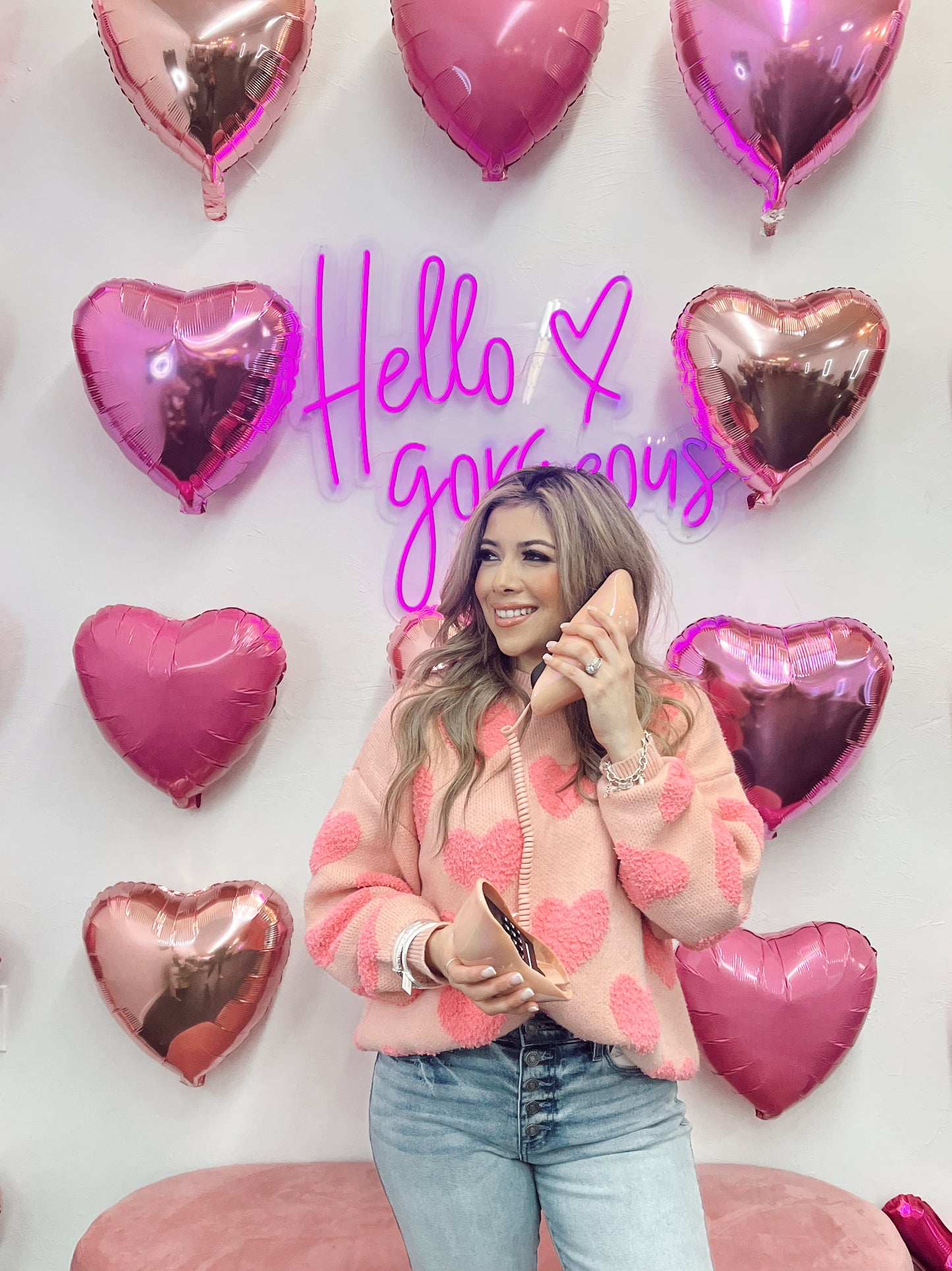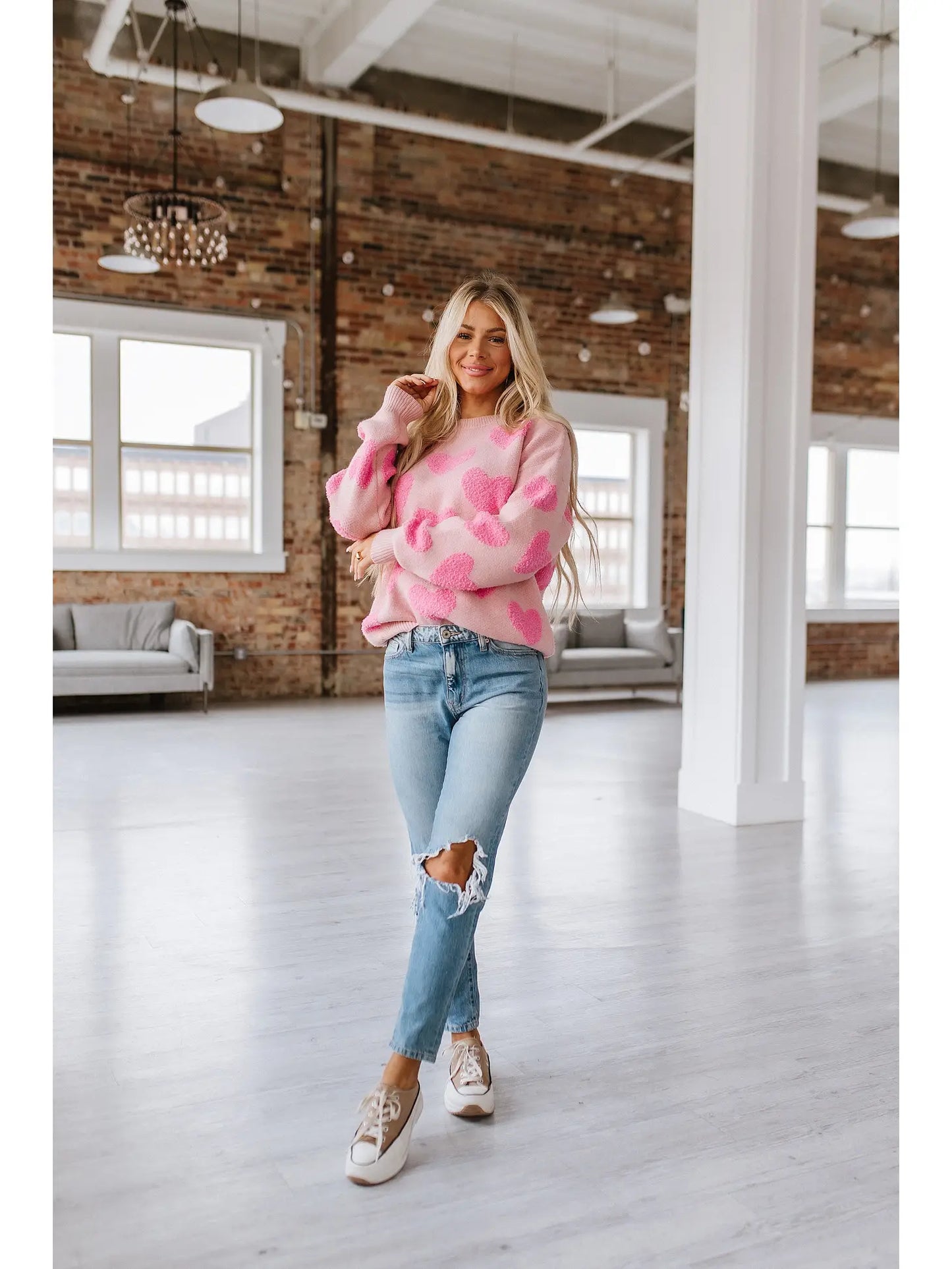 Keep cozy and stylish this winter with our Lovely Fuzzy Heart Knit Sweater. Crafted from a warm, richly colored wool blend, each one features a sweet, heart pattern, adding a touch of whimsical charm. Wrap yourself in luxury and love!